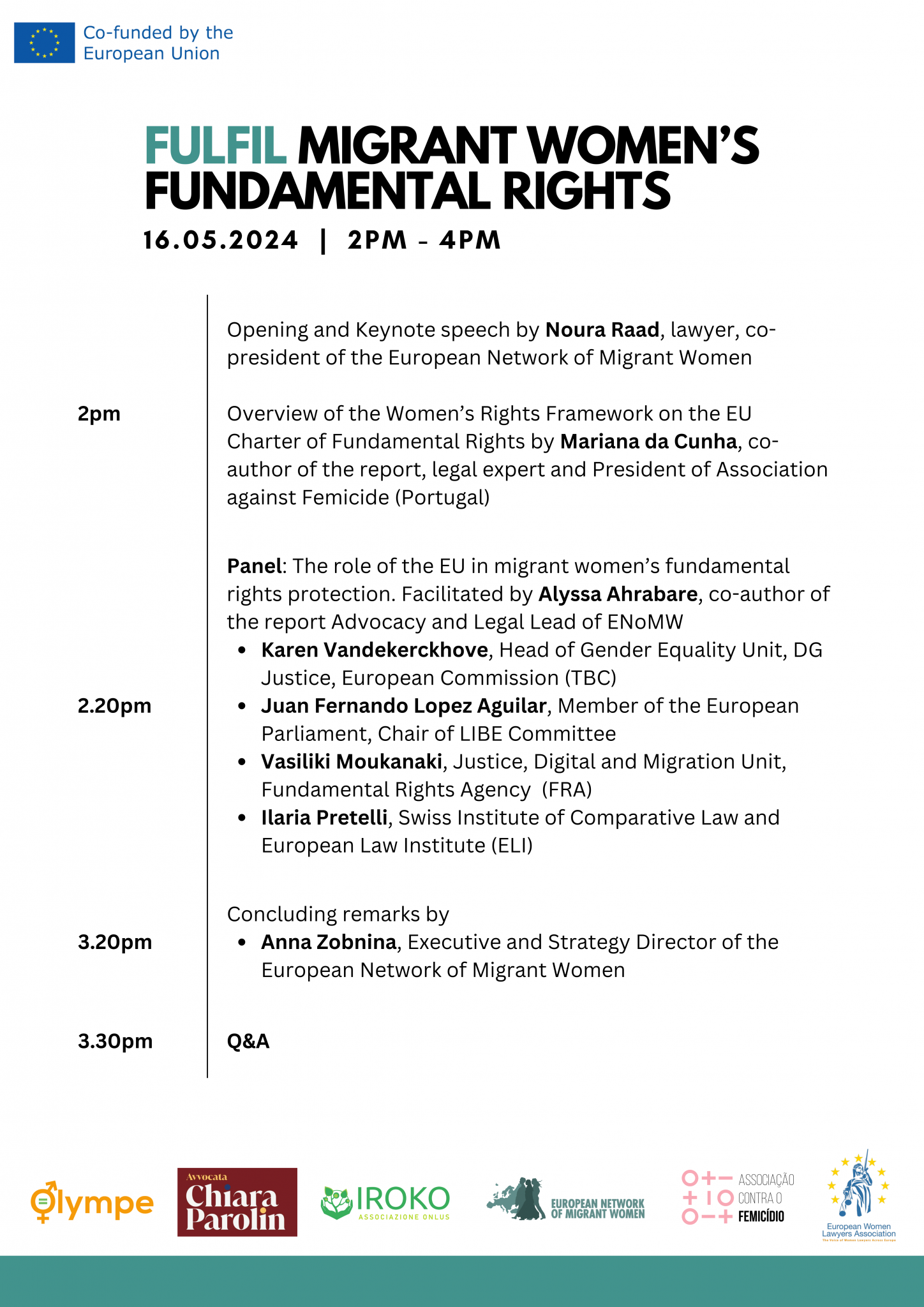 You Should Attend if you are involved in EU policymaking, NGOs, the legal profession, women’s rights and migration advocacy, research, or if you are passionate about upholding fundamental rights.May 2024
